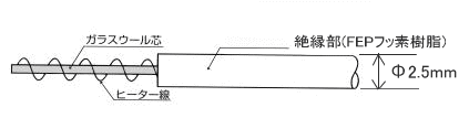 FEPコードヒーターは、ガラス芯に発熱線をスパイラル狀に巻き付け、耐熱?耐薬性?電気絶縁性に優れたフッ素樹脂(FEP)で、外徑2.5mmのコード狀に仕上げ、一體成型した製品です。