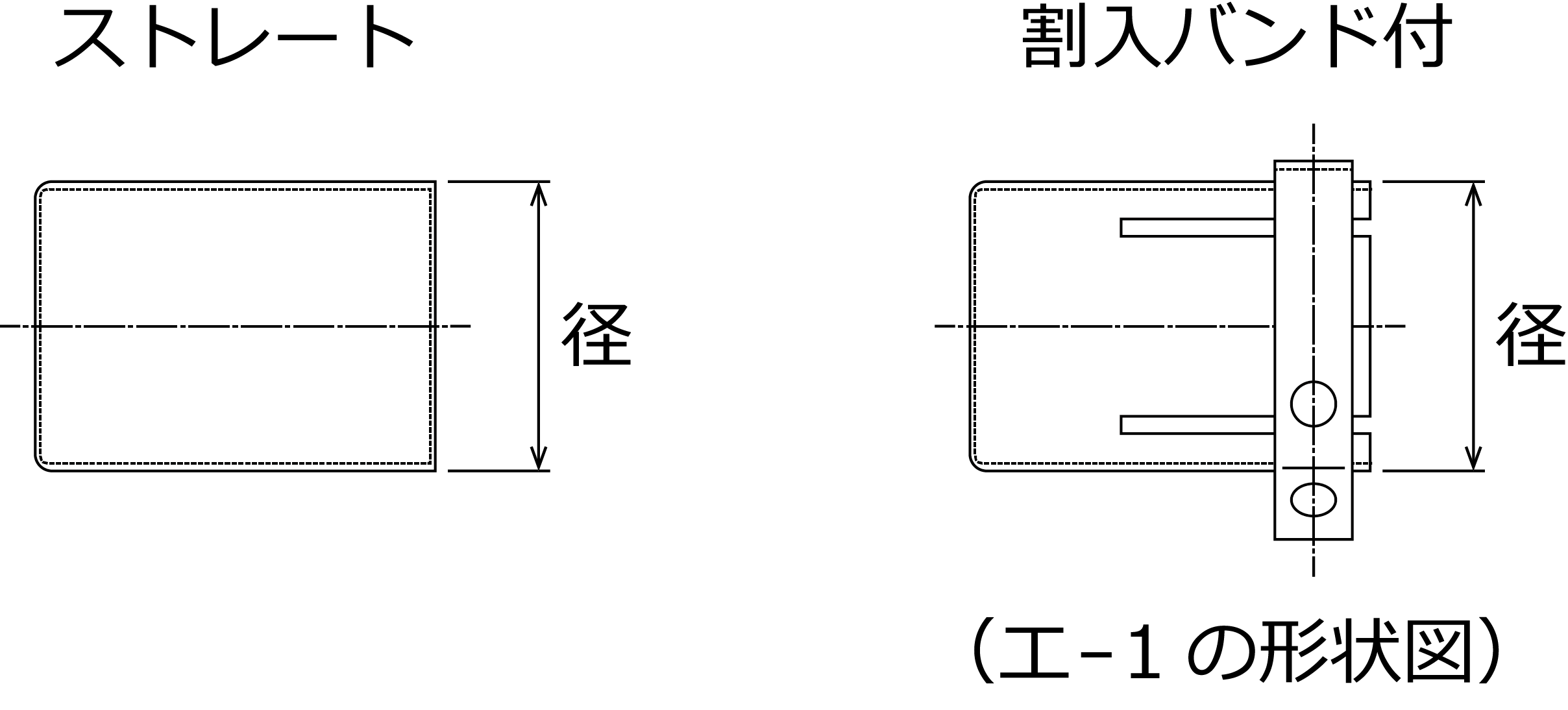 (※)エ-2、エ-4 のストレートキャップは、ストレート部に対し、口元の徑が2mm程度広くなっています。 |