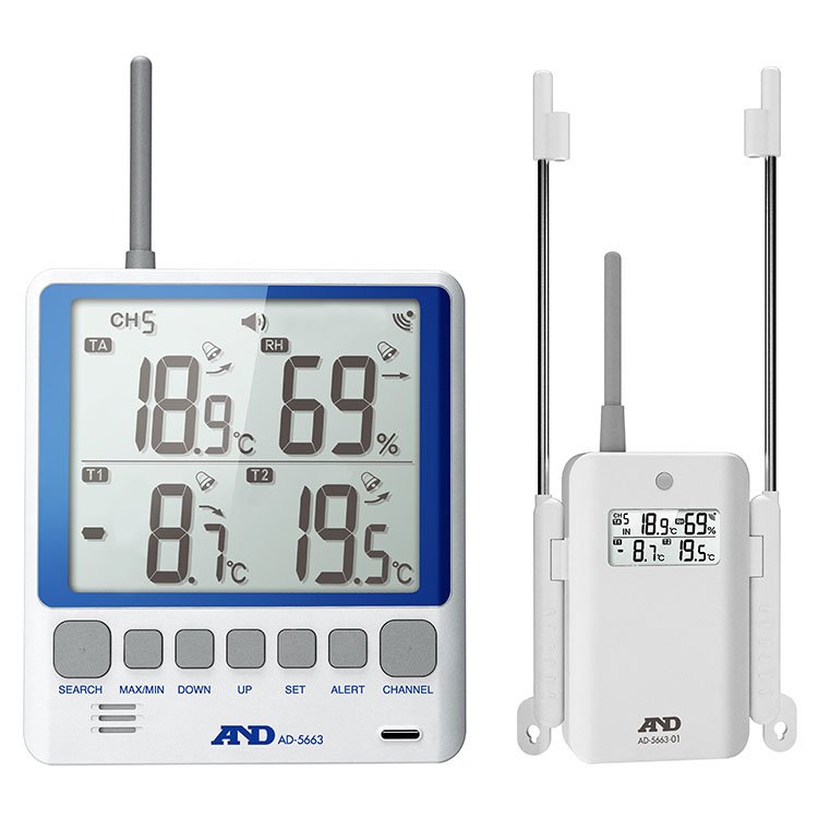- AD-5663は、親機(表示器)と子機(外部センサー(AD-5663-01))のセットです。
