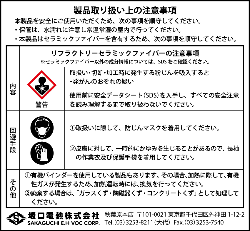 詳しくは厚生労働省HP(下記①)、セラミックファイバー工業會HP(下記②)をご參照下さい。